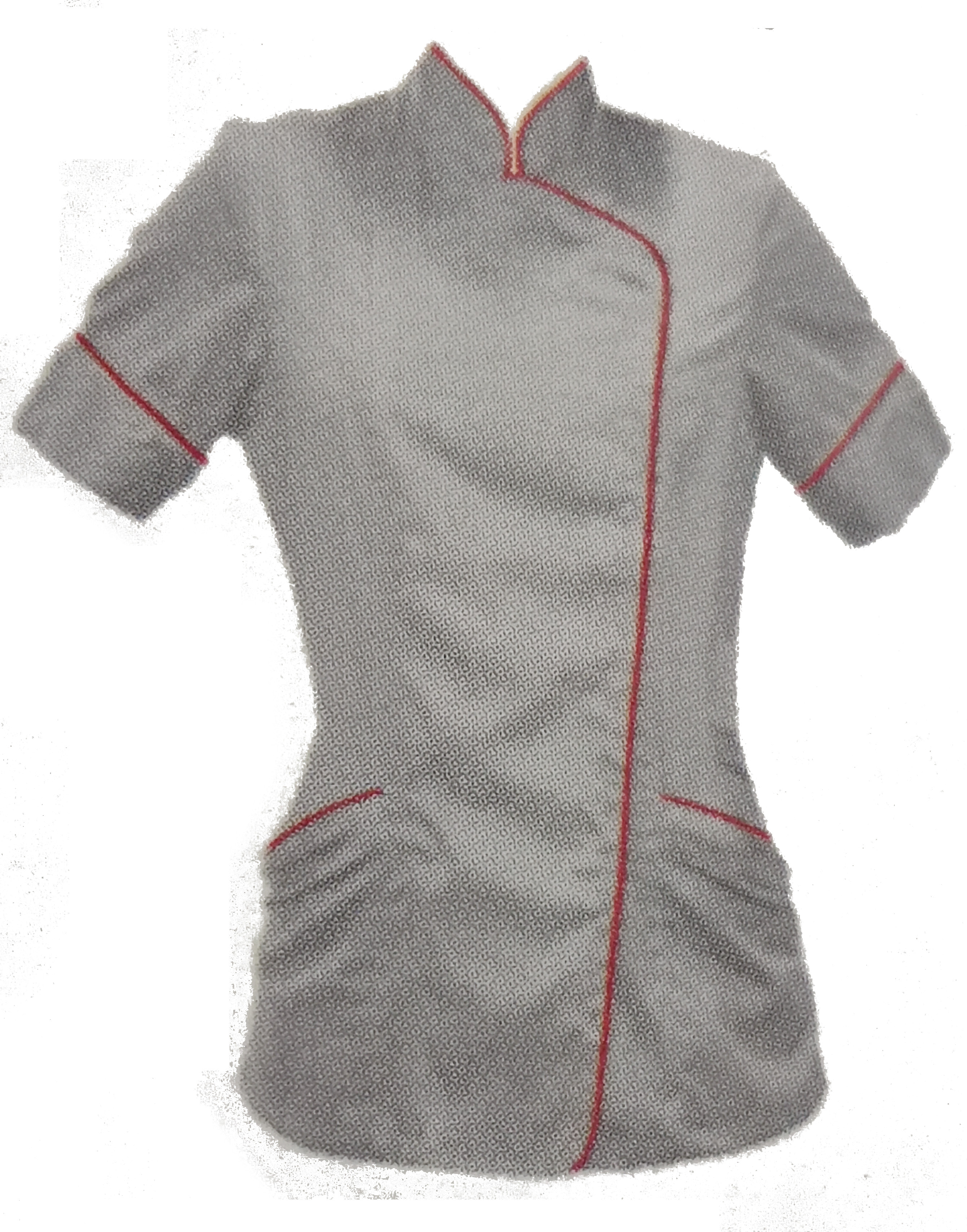 Modello donna, con profilo, abbottonatura laterale con clips, tessuto spalle microforato